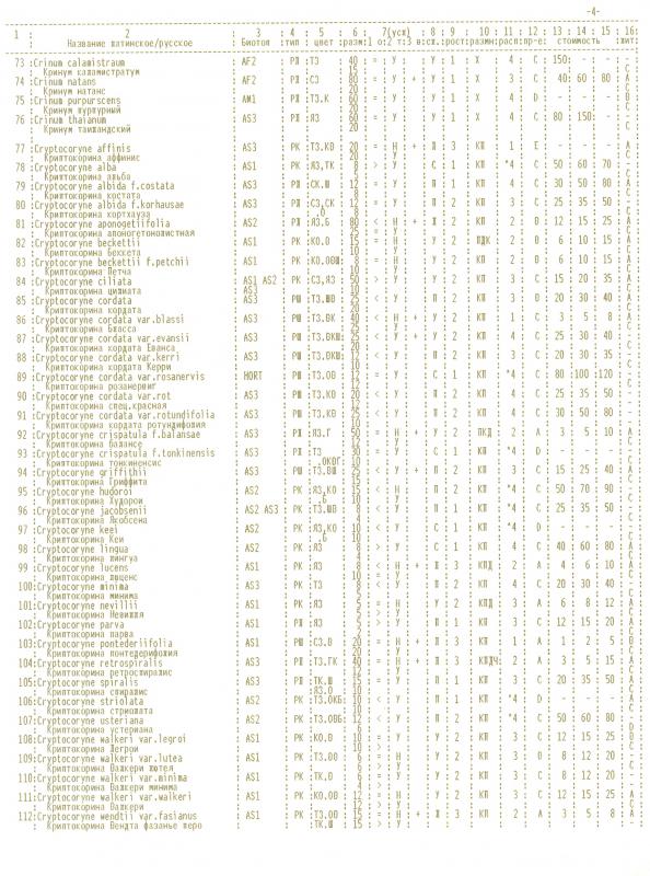 Часто задают вопросы о происхождении, размерах, условиях культивирования, особенностях того, или иного растения. В том числе и в этой теме. Олег, наткнулся в своих архивах на очень интересный (с моей точки зрения) документ - "Каталог аквариумных растений, культивируемых в СССР. (данные секции аквариумных растений по состоянию на 01.09.1991г.)". Труд, заслуживающий уважения со всех точек зрения. Трудно найти более информативный документ такого объема. Это уже история, но в какой-то степени актуален и сейчас. Может будет интересен посетителям этой темы и в чем то поможет определиться с выбором.