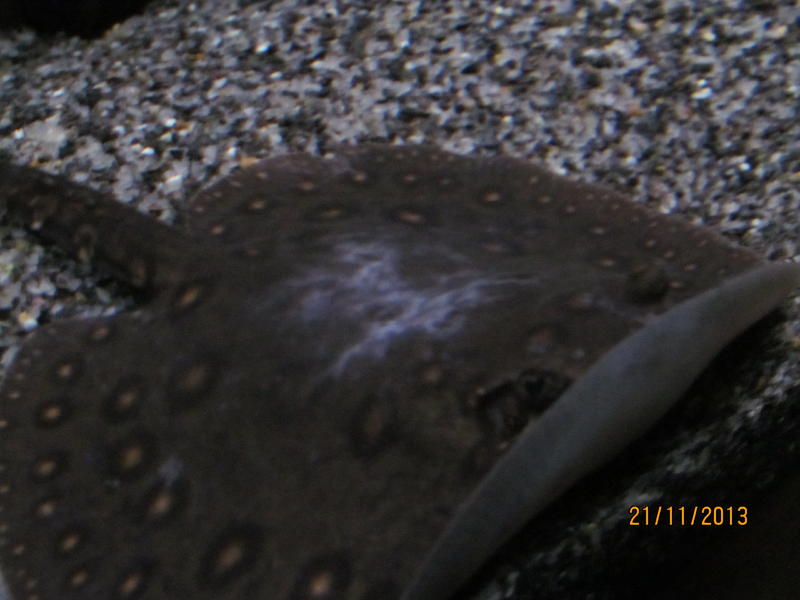 Вот фото ската-только сейчас рана по-больше,т.е. как бы целое пятно(((Заметил он после добавления Мелафикса стал более угнетённым...