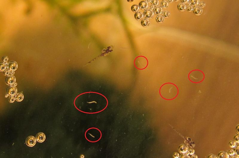 Здравствуйте! В аквариумисте новичок. Кратко, запустили аквариум, купили двух макроподов. Пока вода в банке фильтровалась решили макроподов посадить в контейнер.Те соорудили гнездо, и теперь появились мальки.Сегодня третий день, и заметили неизвестных червяков.Подскажите пожалуйста что за черви,нужно ли с ними бороться,и как? Прошу прошения за качество фото, но лучше сделать не получается.