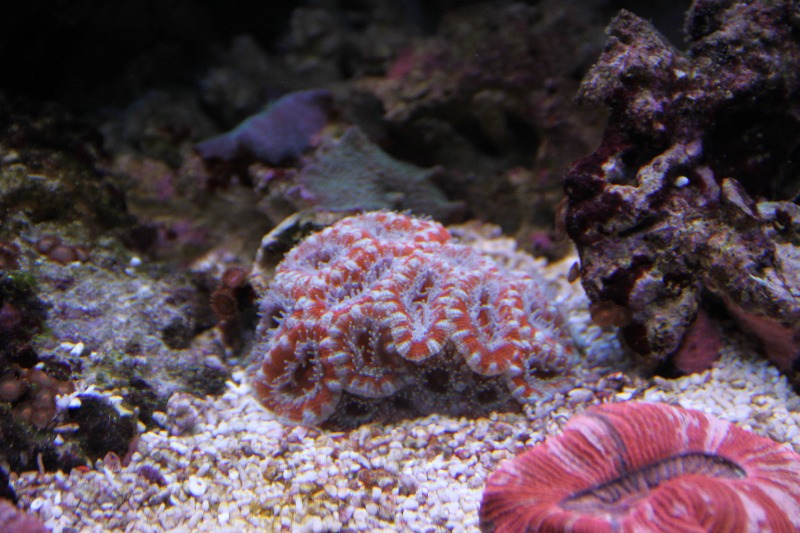 Была проведена небольшая перестановка камней и кораллов. В конце месяца думаю окончательно все расставить по своим местам и докупить животных. После этого планирую оставить в покое аквариум годика на пол.