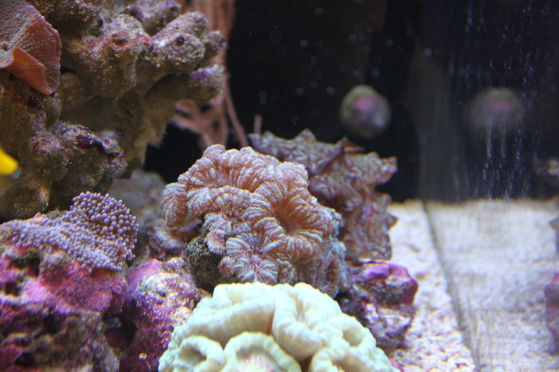 Была проведена небольшая перестановка камней и кораллов. В конце месяца думаю окончательно все расставить по своим местам и докупить животных. После этого планирую оставить в покое аквариум годика на пол.
