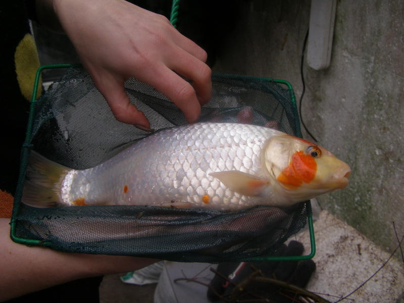 Карпы прожившие лето в бассейне большого городского фонтана- неплохо подросли,округлились и ярко окрасились на солнце. Плюс ещё и произвели на свет несколько сотен малышей, вернее выживших.