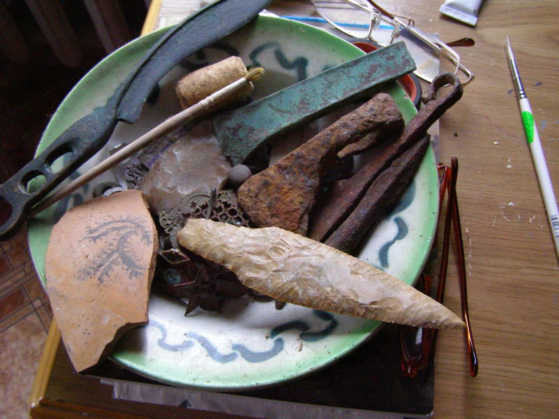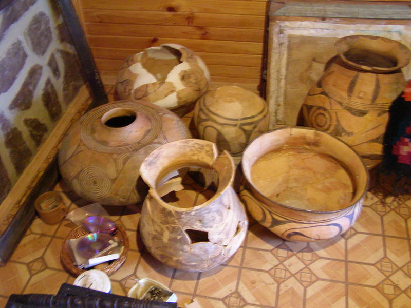 Решили немного прокатится в выходной, поехали в поселок Меджибож в 40км от Хмельницкого с двум целями. Посетить дом старого приятеля антиквара и археолога, посмотреть на его коллекцию трипольской гончарной утвари/ 7000 лет/ которую он сам собирал и восстанавливал.И заодно посетить крепостной комплекс Меджибож- памятник архитектуры. Его дом это старый панский маеток в котором в последнее время был пионерлагерь колхоза. Ну и стоял 8 лет в неприглядном виде. Пришлось много трудится что бы привести его в порядок. На снимках глиняная утварь Триполья и черепки из подобных это восстанавливается. Старинная книга с интересными гравюрами . На последнем фото сверху тарелки бронзовый нож из бронзового века и черепок Триполья с рисунком собаки..
