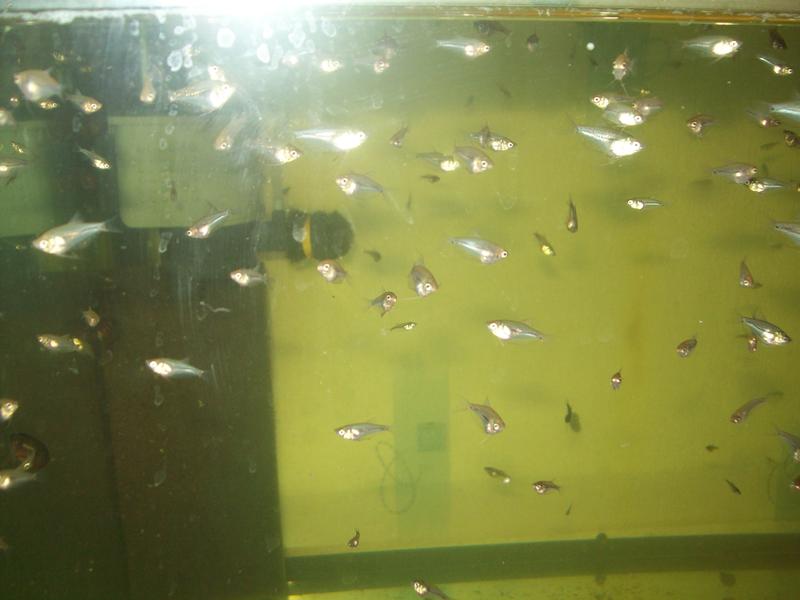Всем привет. Вот решил выложить фото малышей, которые в посте №1. Завтра им исполняется ровно месяц, на сегодняшний день, вся компания дружно перекочевала в 300 л. Рацион тоже увеличился, к артемии добавлен цыклоп и резаный трубочник.