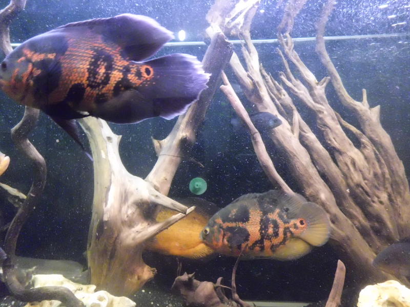 Астронотусы( взрослые) и др. цихлиды (подростки), америка