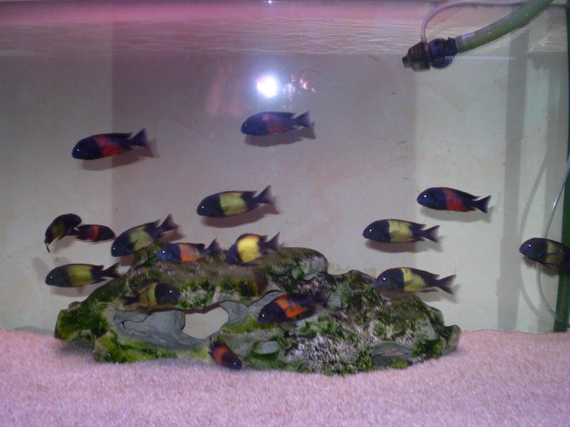 Мои трофы не плохо подросли,думаю если для 20 шт будет мало места придется с одним видом прощаться(.Заменил коралловую крошку на песок 1-1.6 мм.а Камень продолжает зеленеть,все не могу понять в чем причина...фото так себе...фоткать не умею