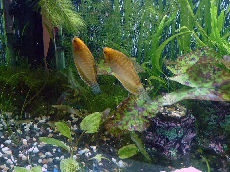 Тримаю лише пару золотих гурамів відколи позбулася болячки з акваріумом і запустила вкінці літа. Проте вперше золотих. Зараз вони великі і мої найперші улюбленці акваріума. Непамятаю аби раніше не було в менехоча б пари гурамчиків у акваріумах.