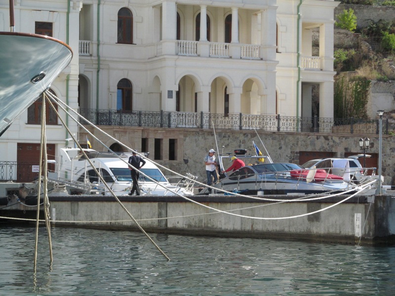 И вот Балаклава. Спустившись к бухте мы поняли, что не оригинальны в своем стремлении посетить этот город. Все стоянки были заняты и машину поставить было совершенно некуда. Но тут же нарисовался человек , который сразу проникся нашей проблемой и отчаянно жестикулируя направил нашу машину к желанной свободной площади. Как выяснилось, его интерес был в том, что бы предложить нам обзорную экскурсию по бухте. Ну как отказать человеку, который так помог со стоянкой…Маркетинг, однако…Тем более, что наши интересы совпадали.