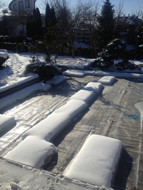 dmitriy, Это не комки а культурные сугробики ))) , там где снег не тает , пенопластовые листы , по периметру и по серединке , что бы пленка не притапливалась .