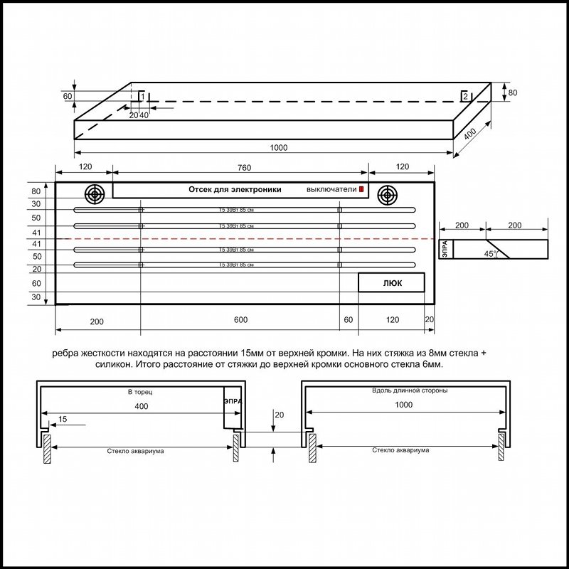 предназначена для прямоугольного аквариума размерами 1000×400;