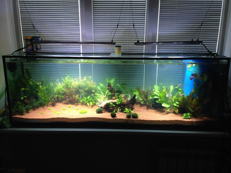 А так тема мне понравилась. Спасибо за фото и комменты. Мой совет: для вас сейчас главное баланс: свет, СО2, растения. Светите не более 0,5 Вт на литр. Светите не более 8 часов. Эти советы основаны на вашей крайне плохой засажености аквы. Скоро пойдут водоросли. Хотя пишут, что светодиоды их не вызывают так как другие лампы. Было бы хорошо. Удачи! Интересная тема.