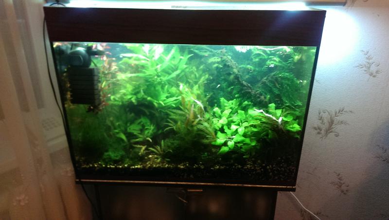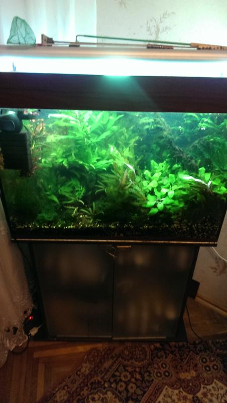 Высота 60(столб воды 50)длинна 80 ширина 35.грунт чёрный базальт2-3 мм+белая галька3-4мм.свет СанСан 2х39w + спецотражатель.фильтр голова Eheim+мочалка.много растений.торги и узнавайки)в личку.