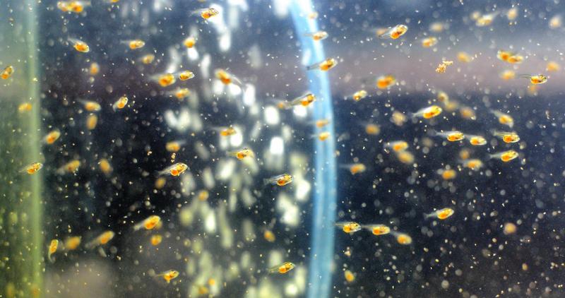 Вот моим малькам исполнилась 1 неделя. Растут они неравномерно. Есть вообще мелочь, на фото не видно. Воду меняю через день 70%, т.к. мутнеет. Кормлю артемией. Со вчерашнего дня начал давать резаный (в кашицу) трубочник