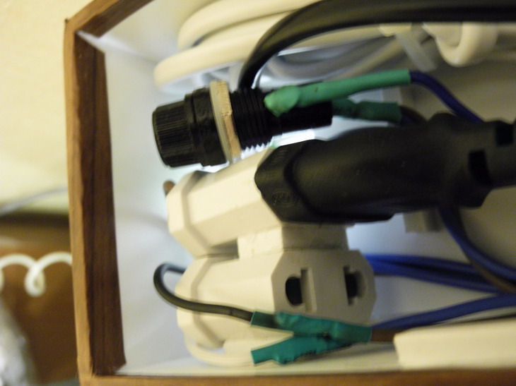 Вентилятор от материнки компьютера. Блок питания 5 вольт 1800 милиампер. Патроны обычные Е27, но миниатюрные, пластиковые, как в китайских люстрах. Лампы по 11 ватт, свет холодный. Переключатели на 220 В 16 А, с подсветкой, но я ее не задействовал, меня раздражают "лишние" огоньки в квартире.