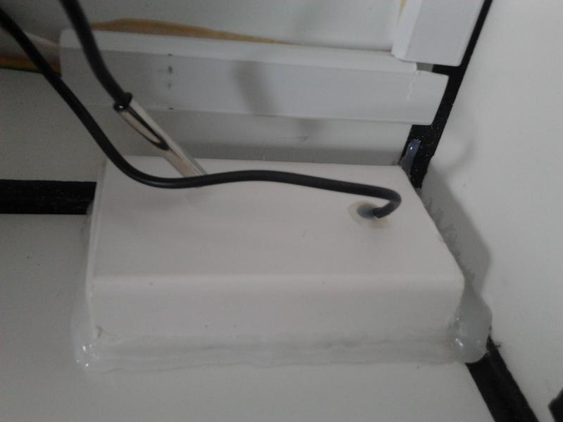 Я робив з композитного матеріалу от таку кришечку вже не раз. Лампи китайські люмінесцентні, без додаткових кулерів і навіть пасивних вентиляцій, вологи практично нема. Всю проводку ховав в коробах 1 см товщиною, баласти в тих же коробах тільки більших за розміром (ставив їх або всередині кришки або знаружи) все залежить від розміру самої кришки. Всі контакти паяв+термоізоляція. Патрони на лампи Т8 не вологозахищені (3-4 грн/шт на ринку), а прості накидні і все ОК!!!! Утримується кришка на вклеєних в передні і бокові стінки кришки кутнички 1*1 см на герметик тому виходить, що на цих кутниках кришка і стоїть на торцях акви. Нічого не тече з них так як воголи немає. В кришку вмонтовано електронний градусник, брав його на Аровані (32,50 грн), якраз стає у вирізаний отвір гарненько, ззаду його від вологи закрив платиковоу коробочкою на термопістолет. Обклеєно чорним аракалом під шкіру. Вийшло гарненько і акуратно як на мене.