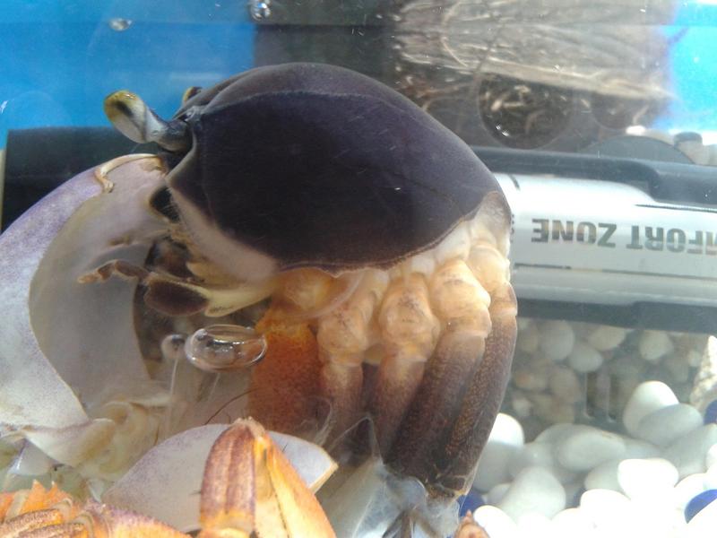 Ура! Свершилось!!! Впервые краб у меня днем полинял и я все видела! Перенес это он так легко, будто платье переодел и сразу же побежал. Может потому что он большой? Маленькие у меня линяли и потом лежали беспомощные и не могли пошевелицца. И еще: он у меня стал черный как негра....даже клешни.....не знаете ПОЧЕМУ?))))