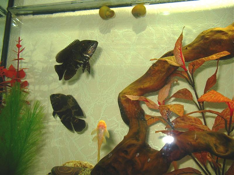 1.Астронотусник 100л, склеил сам.Запущен месяц назад.Рыбсы куплены 1.5 месяца назад, были по 3см, сейчас 11-12см, вместе с ними покупались анцики, но эти не так быстро растут.