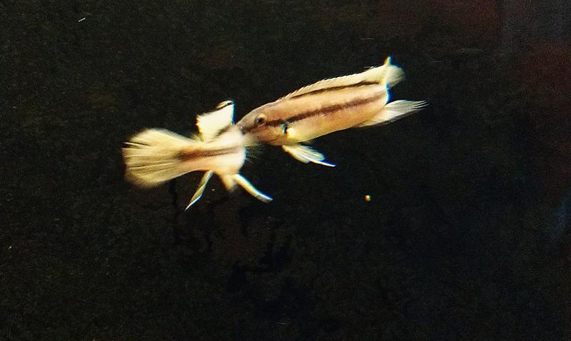 Очень понравился брачный танец самца перед самкой. Это что-то запредельно нереальное ! Такие РЕЗКИЕ зигзагообразные движения с неимоверной скоростью. Не успеваешь уследить взглядом, будто он телепортируется из одного места в другое ! Кстати, Заиры как по мне не смотря на свою видимую медлительность самые трудновылавливаемые рыбы ! По крайней мере, я сделал для себя такой вывод.