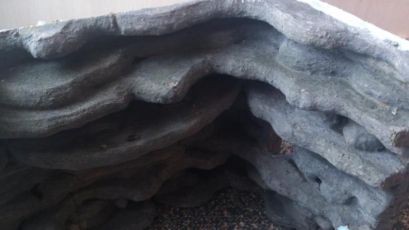 Ще знайшов такий фон із пінопласту, покритий 4-5 шарами цементу, стояв в акваріумі, всі жильці почувались нормально. Розміри 70х30 см, фон кутовий, має відсік для обігрівача чи ще чогось. Ціна всього 100 грн.