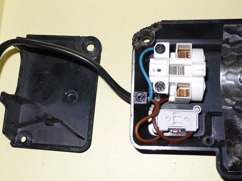 как я просто разрезав(в моем случае удаление поврежденной части провода) ниже металлического крепления,что б можно было беспрепятственно вытащить провод из "колен" крепления