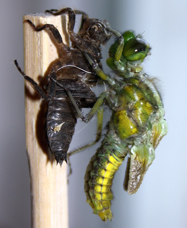 Не знаю, как в природе, но у меня процесс превращения занял около двух часов, а потом ещё часов 10 она вмыкала, набиралась крепости. Под ночь только стала порхать.