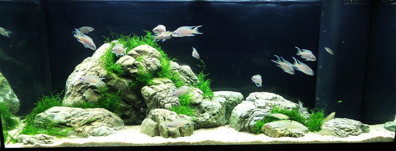 На первый взгляд, не представляет особой трудности запуск аквариума (подключение всех систем, оформление), требуется простое желание и немножко свободного времени. И ты начинаешь реализовывать свои безумные идеи, которых у каждого предостаточно. Очень приятно осознавать то, что уровень мастерства наших аквариумистов растет с каждым годом, работы стали сложнее и насыщеннее. У каждого свое представление отдельно взятого подводного ландшафта, и благодаря простому природному восприятию прекрасного, его гармоничному пониманию, а также, под стимуляцией проводимых конкурсов, хочется постоянно совершенствоваться, двигаться вперед, познавать, открывать для себя все новые горизонты. И, как бы там ни было, всегда есть куда расти. Так и с моими аквариумами. В дизайне придерживалась традиционных решений, близких Танганьикскому биотопу, и в процессе оформления, получаю огромное релаксационное удовлетворение! Так что, не спеша переделываю аквариумы, и стараюсь в полной мере отдаться любимому занятию!)