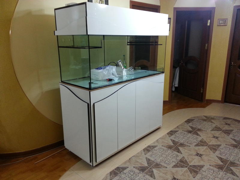 Вчера заехал в магазин где уже стал постоянным клиентом после покупки аквариума))) и вот что увидел у них,та же фирма что и у меня,только другая модель и размер 1500,не помню правда стоимость но смотрится ниче так,правда золотые вставки из алюминия на любителя.