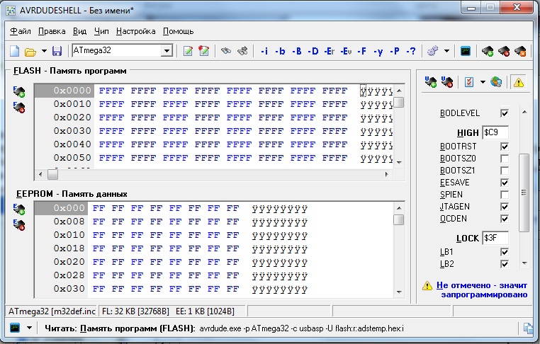 Все остальные fuse-биты должны быть незапрограммированы (равны 1).