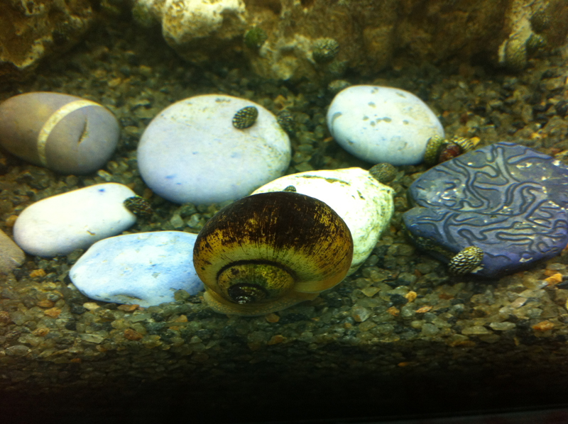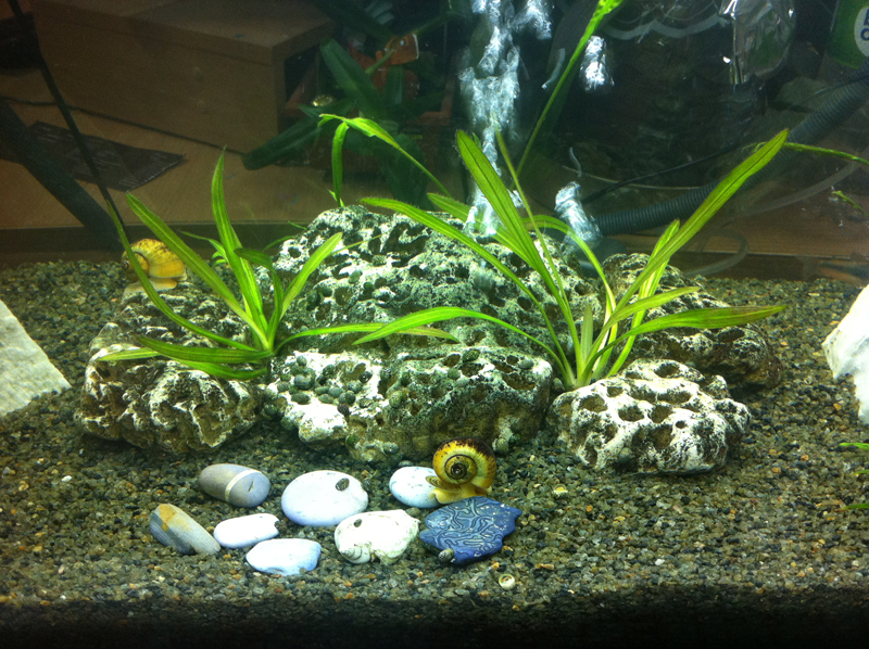Запустил на работе банку в 110л и, о, удача, бывший хозяин банка имел камни обросшие в хлам. И таких же улиток.