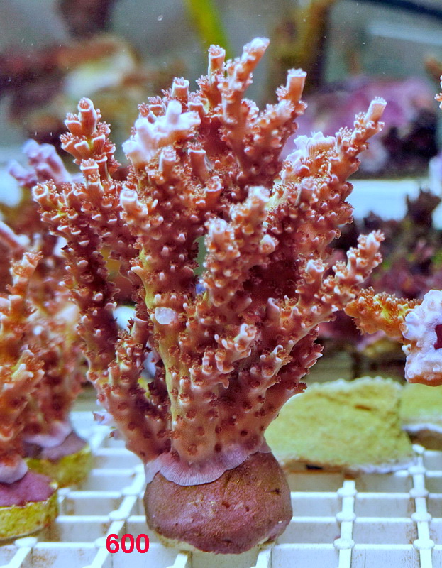 10- Акра,зеленоватое тело,голубые точки роста,полиппы от коричневых до бордовых,меняется от освещения, кораллы 9см - 0,22 мин -600-600