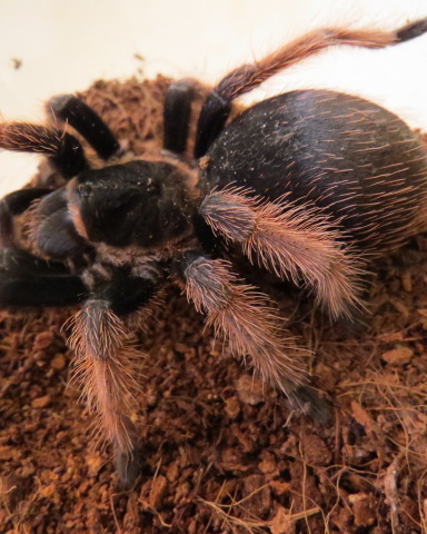 Brachypelma klaasi L9 уже откормилась, не за горами следующая линька. Эта самочка всегда спокойна, а окрас как после линьки, так и перед линькой, всегда притягивает взгляд