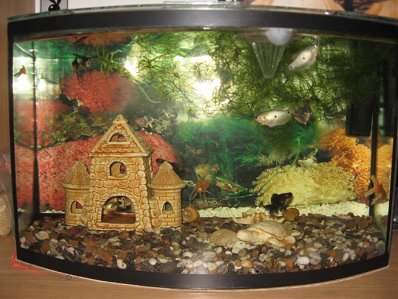 Какой же он огромный? Там, если не ошибаюсь, литров 170 было. И плавала там стайка суматранцев, пара гуппий, меченосцы да сомы.