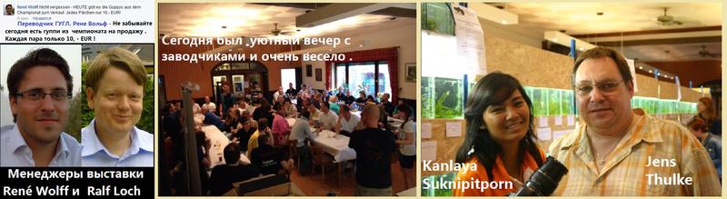 В прошедшие выходные 28 - 29 . 06.2014 в Германии прошла выставка гуппи Открытый Чемпионат Германии , в рамках Чемпионата Европы . Выставка проходила на окраине Дюсельдорфа в Schwalmtal , была организована клубом СAGD . Это одна из самых крупных выставок гуппи в Европе . На выставке проходили интересные лекции , извесных селекционеров . Здесь на видео предвыставочная реклама выставки - http://youtu.be/T4Na3xERQhc . На видео о самой выставке , вначале показан холл выставки , гуппи проходившие экспертизу можно увидеть промотав видео до показания счетчика 1-04 минуты.