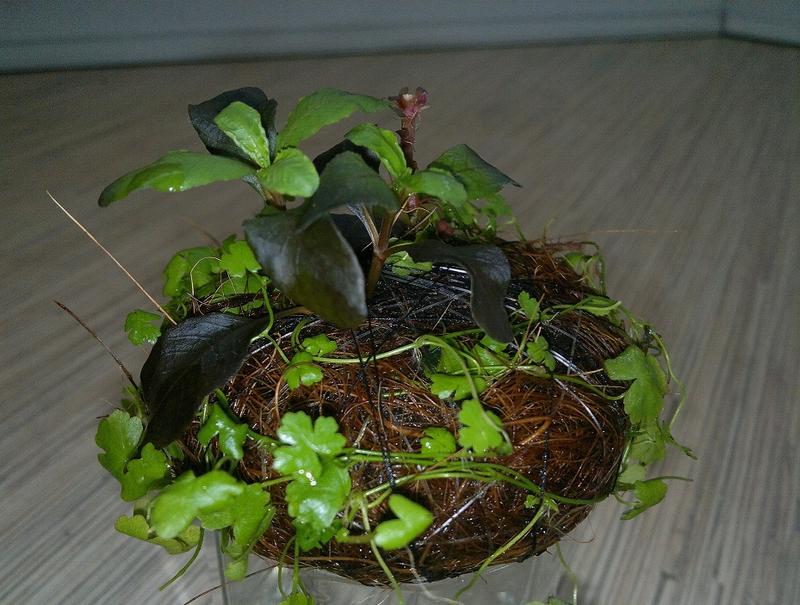 Поэкспериментировав с рецептом для «Ваби» немного отошла от стандартного рецепта, так как у меня стоит задача не только сделать «ваби», но и опустить их в воду аквариума. Глина, которая должна быть по рецепту раскисает и мутит воду. А мох Сфагнум очень засоряет дно и от него вода становится цвета чая и так продолжается бесконечно долго. А в наших цветочных магазинах выбор грунтов очень небольшой. Поэтому я остановилась на универсальных почвосмесях не содержащих глину. Размешав всё до однородной массы, добавила воды из бювета, слепила различные формы для «Ваби». Затем обвернула кокосовой стружкой и обмотала рыбацкой прозрачной леской. Получились вот такие себе «мотанки». Не сдержусь скажу, что очень это приятно делать и весело. Затем пинцетом делаем отверстия и туда засаживаем растения. Как мы с вами понимаем, аквариумные растения не все пригодны для «Ваби». У нас аквариумистов, в арсенале есть водные и болотные растения. Нам для «Ваби» нужны болотные. Хотелось бы составить список тех растений, которые точно приживутся. Если у вас друзья есть такой опыт и вы знаете названия этих растений пишите в теме, составим такой себе черновичок, чтобы не было у нас разочарований. Из личных наблюдений скажу, что в эмерсную форму переходят не все растения, а некоторые настолько утончаются, что со временем плавно умирают.