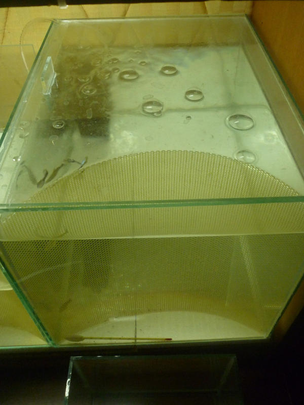 У меня вот так, только сейчас семьи живут за сеткой, где меньше места, а в другую сторону уплывает малек. Там где живёт семья, я ещё кидаю канадскую элодею, чтобы увеличить шансы выживаемости малька.