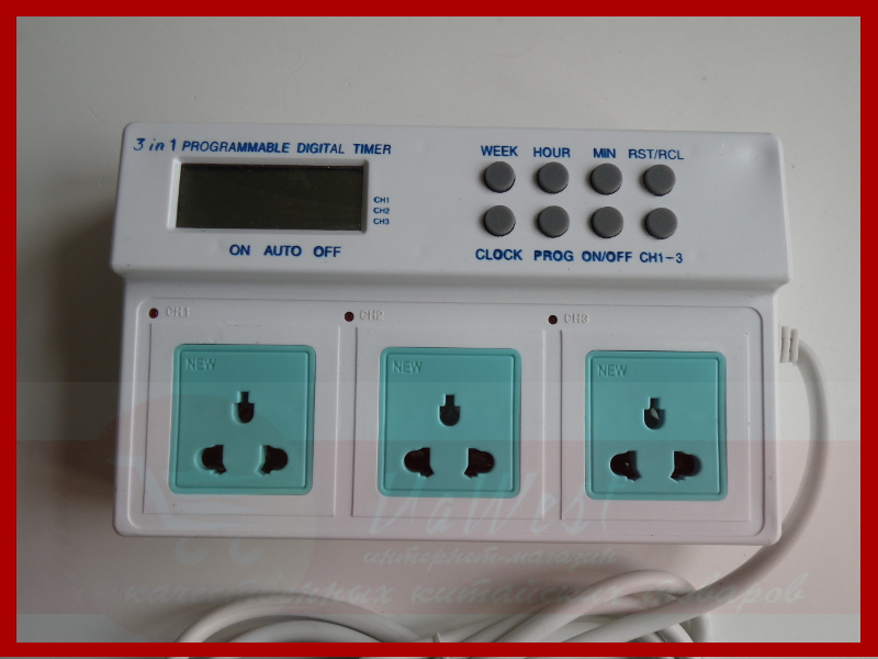 Более интересен прибор, который достаточно сильно отличается от уже названных таймеров - таймер 3в1 - таймер, в котором есть три полноценных программируемых канала с отдельными розетками на каждый из каналов: