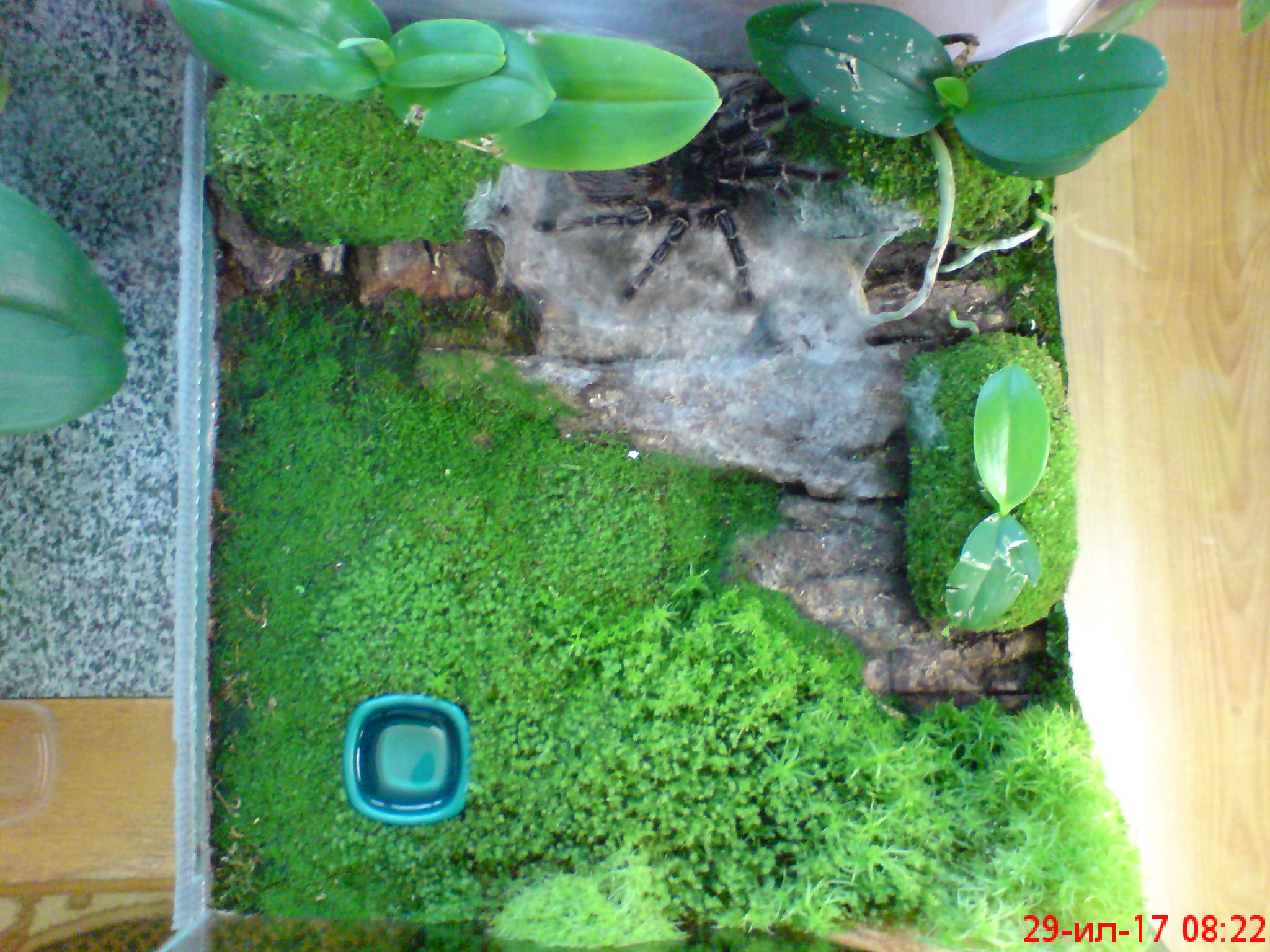 1. там влажность около 70%. вот тут например http://www.bugdesign.com.ua/catalog/spiders/157 и еще много где читал что ей нужна влажность 70-80%.