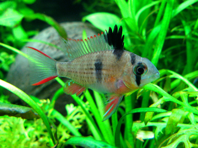 Аномалохромис Томаса. Первый день ребята прятались, а потом все дружно обнаглели, поели всех катушек и общипали всю бороду...ну почти всю. На одной из фотографий видно, как он (она) ее заглатывает. Самое интересное, что продавец (вроде нормальный дядечка) утверждал, что пол рыбок различить почти нереально. А в нете нашла кучу информации по этому поводу. Ну что тут будешь делать - дурят нас, какими бы мы "начитанными" не казались  . Теперь еще хочу приобрести несколько Боливийских бабочек и можно наслаждаться компанией интеллектуалов.