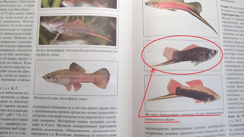 С этим доводом не поспориш . А остальные породы меченосце в том числе и черный , относимые наукой к виду Xiphophorus helleri , тоже гибриды - или из всего разнообразия пород меченосцев только черный гибрид ? Почему везде пишут дословно черный меченосец , а не гибрид черный меченосец ? Без добавления слова гибрид ? Может чернил жалко ? Или не обозначают " гибрид черного меченосца " отдельным словом , например как именно гибрида - мул , заяц тумак , межняк , бестер , лигр , - список гибридов можно продолжать ... P . S . Специально для Вас . достал книжецу , с надеждой что Какндидату Биологических Наук Вы поверите ... сделал фото в попыхах , но суть понять можно . КБН Полонский относит черного меченосца не к гибридам , как ВЫ , а к СЕЛЕКЦИОННЫМ ФОРМАМ , как и другие цветовые варитеты природного вида Xiphophorus helleri ! . .