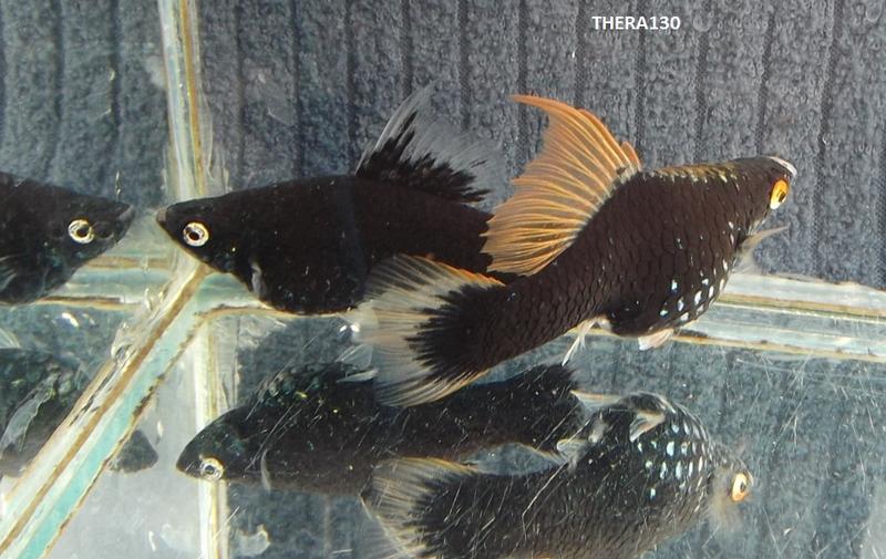 В этой части согласиться полностью не могу . У меня одна из линий черных меченосцев разводятся "в себе" уже поколений пять/или больше/ . Из их пометов отбирается рыба самцы и самки черное на красном /альфа/ , без добавления других цветовых варитетов и запускается в этот аквариум для дальнейшего разведения . Вопреки Вашим словам современные линии , повторюсь - современные линии черных меченосцев не стерильны - как самцы , так и самки в своем подавляющем большинстве в помете /не более чем в других породах/ . На фото 1 , отобранная молодеж перед запуском в аквариум , где содержатся производители черных меченосцев/альфа/ , которые размножаются вопреки Вашим утверждениям , " в себе" уже более пяти поколений . И если будет нужно , кровь буду подливать через черных самцов /альфа/ других линий . Пока необходимости в этом нет . Вторая линия разведения заключается в седующей системе . Черные на красном - стадо производителей - самцы и самки занимают отдельный аквариум . К ним подсажены самки рубина , самки черного альбиноса . Пометы получаются от всех трех групп самок . В эту линию запущен/внесен/ ген альбино , через рубинов . Чтобы не получать слишком много черных альбиносов /см.фото 2/ , хотя спрос на них есть , периодически в это стадо производителей запускаются черные на красном /альфа/ самцы из первой линии - свободные от рецессивного аллеля гена альбинизма . Такое разведение запущено для того , чтобы получить как можно больше черных на красном/альфа/ меченосцев . Рынок диктует свои условия - никому и даром ненужны черные на серых или светлых плавниках , которые еще мальком сливаются .... Можно разделить черных меченосцев на две группы - совковых и современных . Очевидно утверждая , что черные меченосцы разводятся только с использованием других пород меченосцев , вы говорили о совковых черных и описанных методах разведения в совковой литературе . У совковых линий черный пигмент частично выходил на хвостовой плавник . В любом помете мальки с таким дефектом заканчивали свою жизнь не от старости . а от меланомы . Современные , завозные линии полностью лишены этого деффекта . Соглашусь в той части , что незначительная часть черных самок остается стерильны , но этот процент не боле , чем процент стерильности производителей в некоторых других ( и даже гомозиготных ) породах меченосцев . .  .