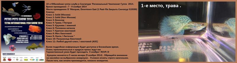 7 - 9 сентября 2014 в Сингапуре , прошла клубнаяя , региональная , юбилейная - 10 лет клубу выставка гуппи " 10th Anniversary Guppy Club Singapore Regional Show (10-я Юбилейная Гуппи Клуб Сингапур Региональная выставка) " . .  .  .  .  .  .  .  .