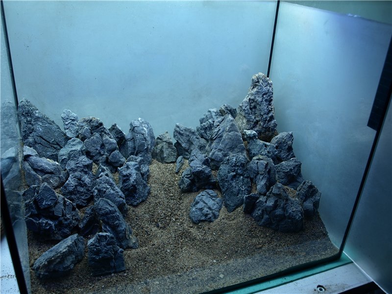 Фото 1 и 2 - это одно и тоже с разных ракурсов. По мне - это более сильная композиция. Можете ещё попробовать собрать треугольную композицию - все высокие камни на одну сторону и идём вниз. Совет: добавьте больше грунта чтобы получился уклон к заднему стеклу по сильнее, вплоть до половины высоты аквариума. Будет бомбезно.