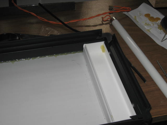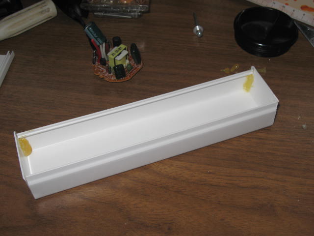 Для крепления лампы и корпуса для электроники из куска ПВХ кабель-канала склеил термоклеем две коробочки
