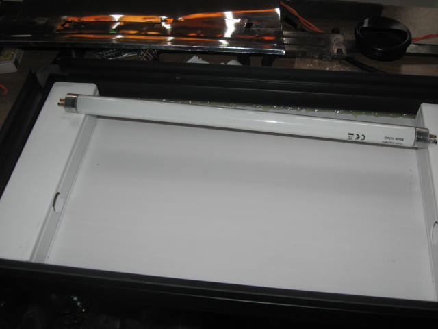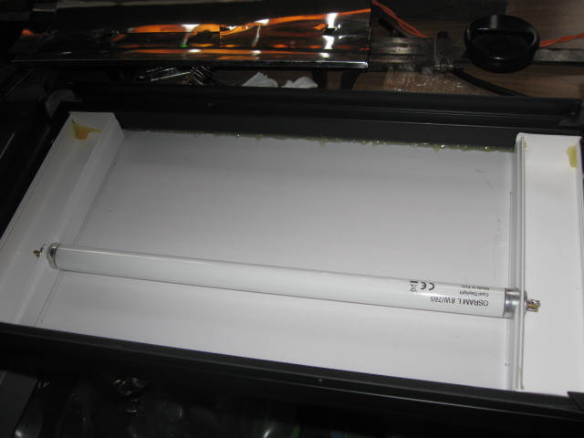 Для света очень удачно подошла по размеру лампа дневного света. Вместо готового электронного балласта ,использовал начинку от экономки (подходящей мощности )в которой сгорела только сама лампа.