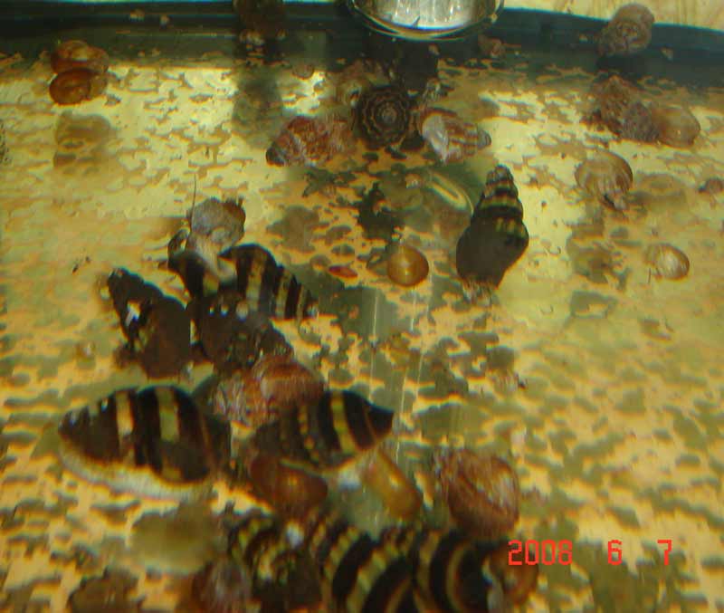 Хишники наелись, попрятались по раковинам - только хоботы торчат. Поели - можно и поспать  .