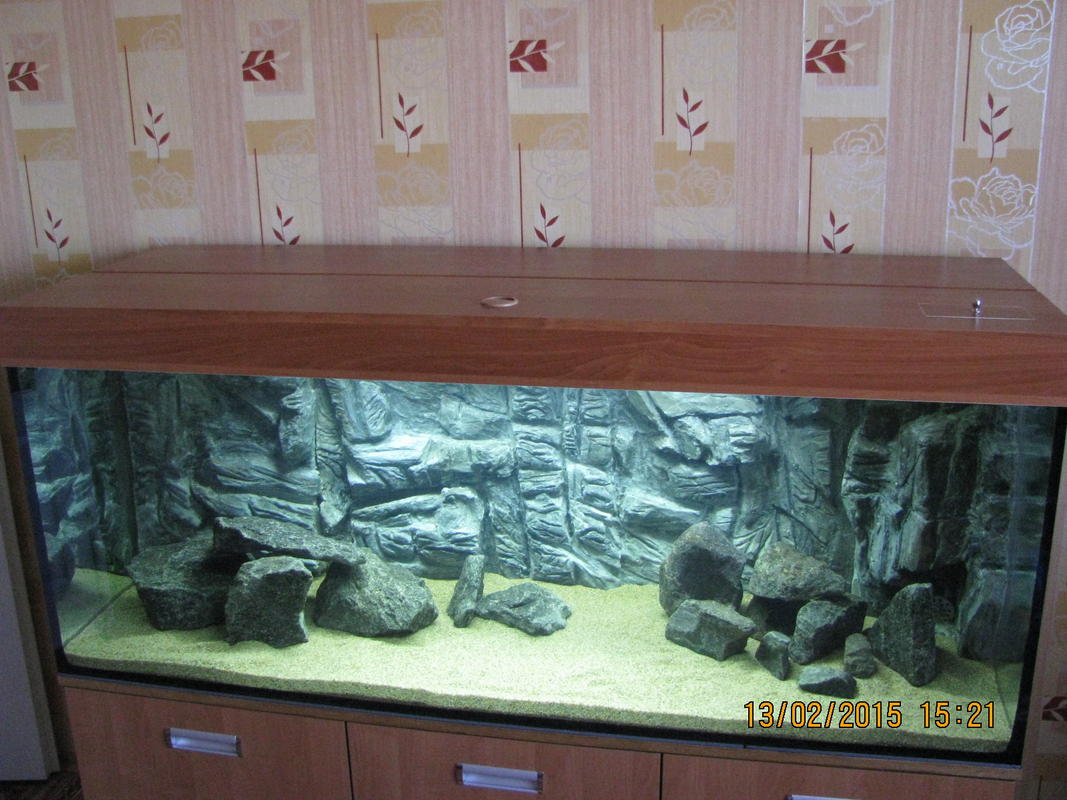 Доработки ещё будут , типа уголки на торцы стёкол , другие булыги , всовывание аквариума в тумбу , ну и по ходу что ещё всплывёт .
