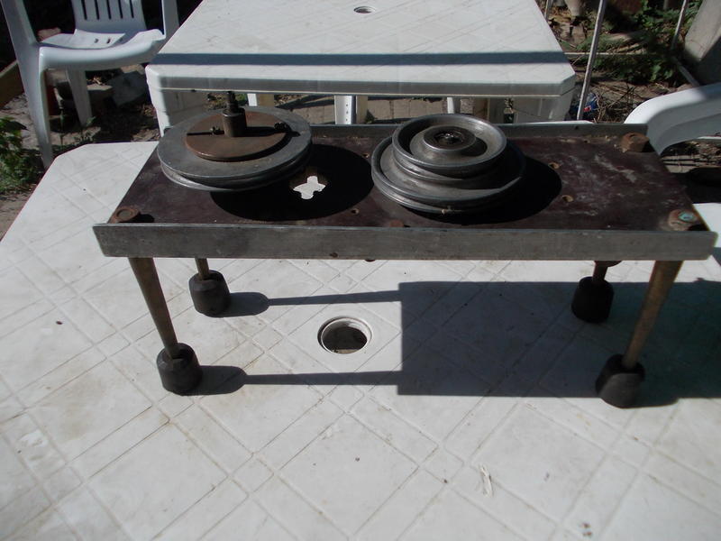 На фото только два шкива, самого компрессора там нет. На одном шкиве прикреплён вал с регулируемым экс центром, который скорей всего приводил в движение какой-то поршень, или что то другое, для чего нужны поступательные движения.