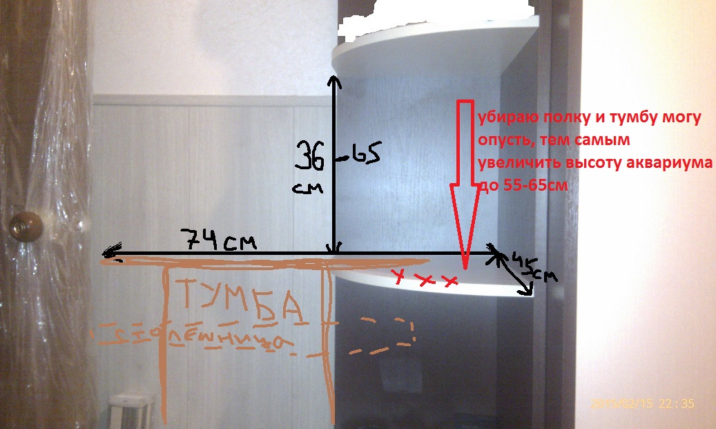 Размеры для тумбы еще не замерял. Если есть контакты людей с прямыми руками по изготовлению тумб и самих аквариумов - прошу контакты в личку