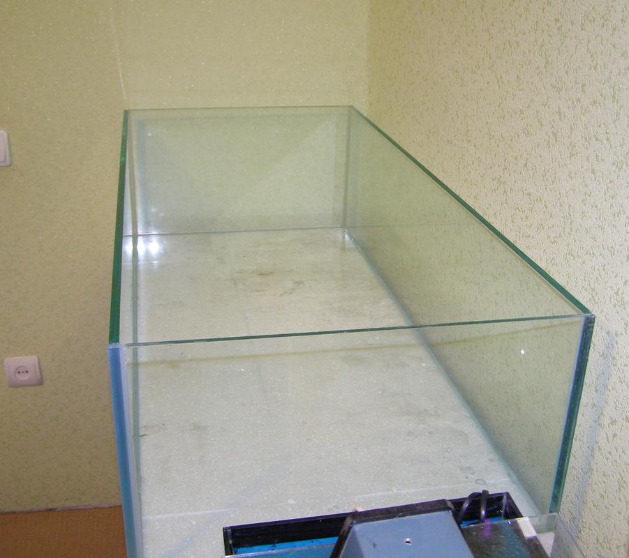 продам 110-50-30см.Фронтальна і тилова стінки з 10мм скла.Все інше 8мм. Поклеєний синій фон на задній. Фото на момент виготовлення акваріуму. Три роки експлуатації.