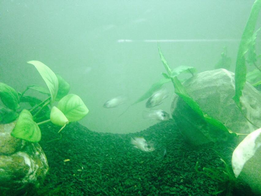 мутный на фото так как добавила грунт сегодня, вода больше месяца в акве. Спасибо кстати Коляньчику за грунт!